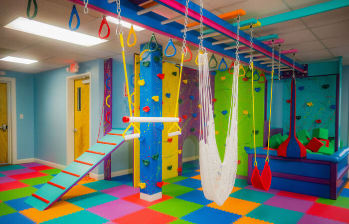 Therapists can now broaden their treatment options with our large sensory gyms. Our sensory gyms help children acclimate to new stimuli and help foster independence. Our sensory gyms include swings, ball pits, zip-lines, monkey bars, rock walls, trampolines, castle structures, seclusion areas, and jump decks. A trained therapist can introduce all of these activities.